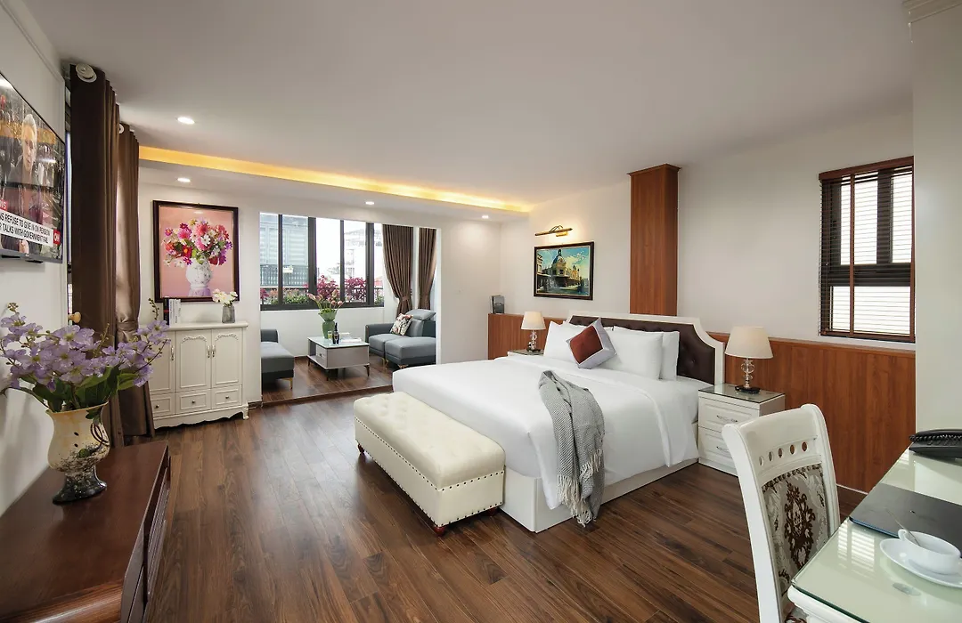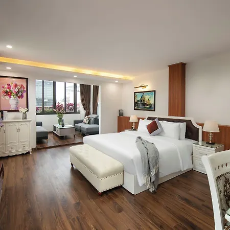 高級Trangtrang Luxury Hotel ハノイ市は、東京義塾広場から600メートルの古い江南区(カンナムグ)地域に位置し、湖の景色を望めます。 ハノイナイトマーケット少し離れたところを誇るこのホテルは、27室の客室とテラスバーを提供しています。